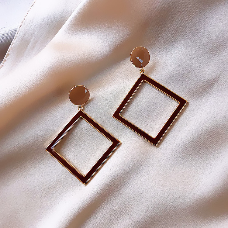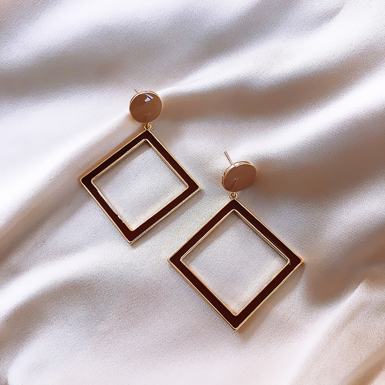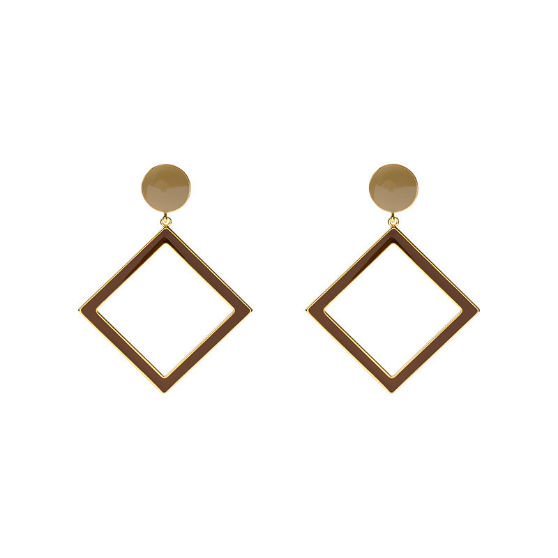 Κρεμαστά σκουλαρίκια σε καφέ χρώμα, με χρυσό φινίρισμα, σε γεωμετρικό σχεδιασμό, από κράμα ορείχαλκου.