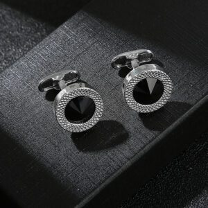 Μανικετόκουμπα δίχρωμα, σε χρώμα μαύρο ασημί, σε μοντέρνα σχεδίαση, διακοσμημένο με ένα ανάγλυφο σχέδιο, κατασκευασμένο από κράμα ορειχάλκου, βάρος 12,6 gr.