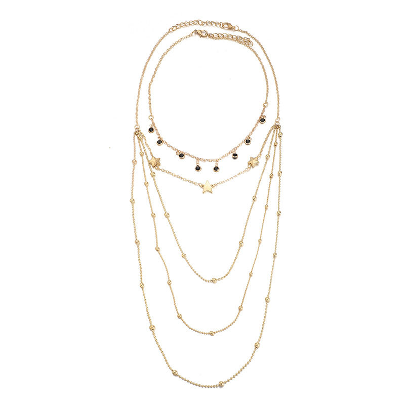 Πολλαπλό κολιέ, αποτελούμενο από λεπτές αλυσίδες στο χρώμα του χρυσού,διακοσμημένες με κρυστάλλους, από κράμα ορείχαλκου, βάρος 13 γρ