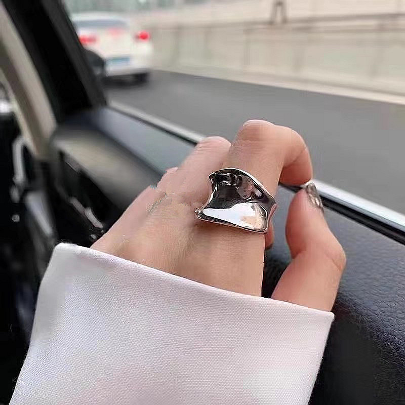 Δαχτυλίδι που σχηματίζει μια ομαλή κυματιστή εσoχή, σε χρώμα ασημί, από κράμα ορείχαλκου , (one size)