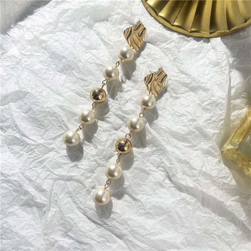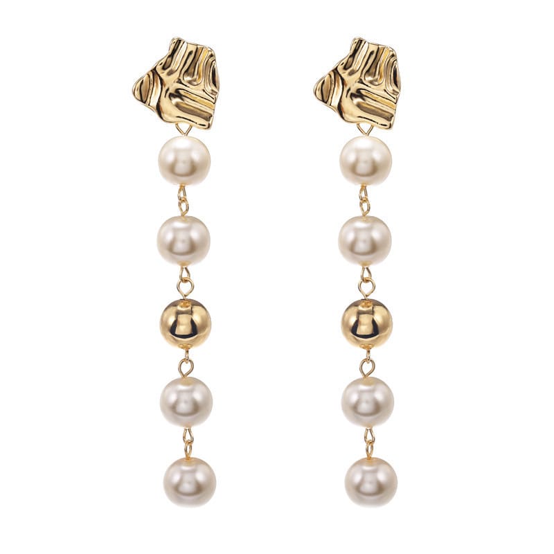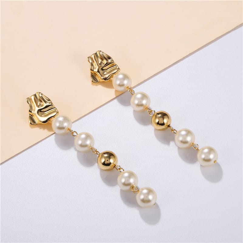Μοντέρνα και δημιουργίκα , μακριά Σκουλαρίκια με πέρλες, από επιχρυσωμένο κράμα ορείχαλκου, βάρος 27 γρ