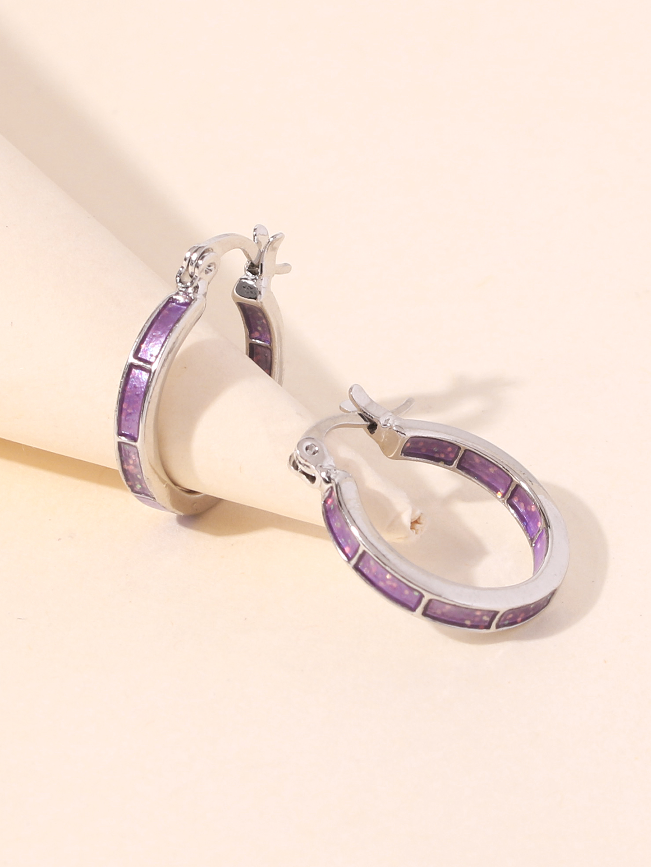 Σκουλαρίκια κρίκοι σε μωβ χρώμα από χαλκό, βάρος 3,9 γρ